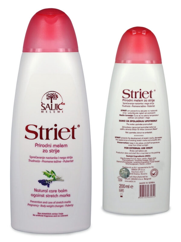 Jst Striet uporabljam že leta in leta. Prvo Mentin in Sedaj Šaljićev originalni. Morm se pohvalit, da rdečih skoraj ni a bele so vidno zmanjšane. Uporabljala sem za brazgotino Melop E in mi je malo zmanjšal brazgotino (čeprav nisem redno mazala). Ena oseba mi je dala dobro idejo, da probam tudi njega da mažem na strije, kajti so tudi strije brazgotine.